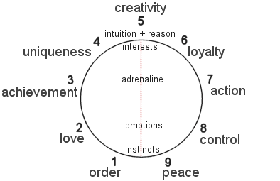| 9 | 36 | You desire peace, for everyone to get along. Impetus - deficit and/or excess of peace in your life experience. Problem - there is always a certain amount of conflict in the world and some level of it is healthy. Ethos - I must be peaceful and easy to get along with to get what I want. |